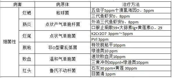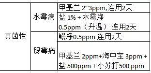 4、注意觀察及早發(fā)現(xiàn)及時對癥治療。鰻魚健康時活動良好,發(fā)病時活動異常、食欲下降,要及時檢查確診。檢查內(nèi)容包括皮膚粘液、內(nèi)臟器官(肝、膽、腸、胃、腎)、鰓組織(主要檢查寄生蟲、霉菌、細菌),另處還可通過肉眼觀察以及實踐經(jīng)驗進行判斷,有的放矢地選擇藥品對癥下藥。如鰻魚發(fā)生鰓霉病要用亞甲基蘭而不能用抗菌素。鰻魚常發(fā)生的病害及治療方法筆者總結如下表。